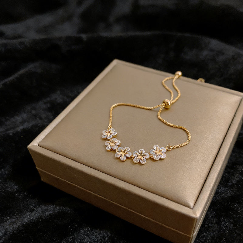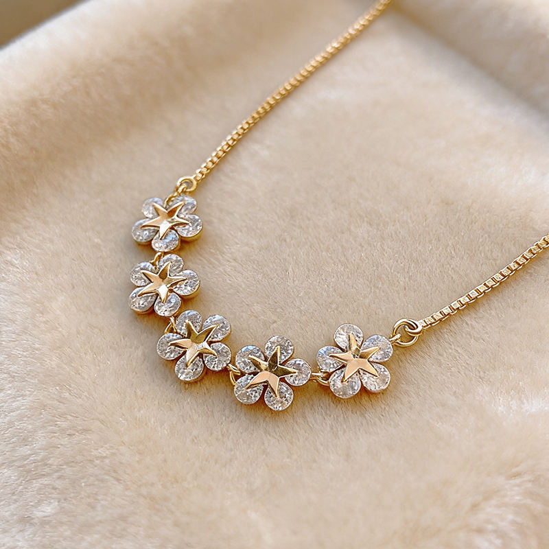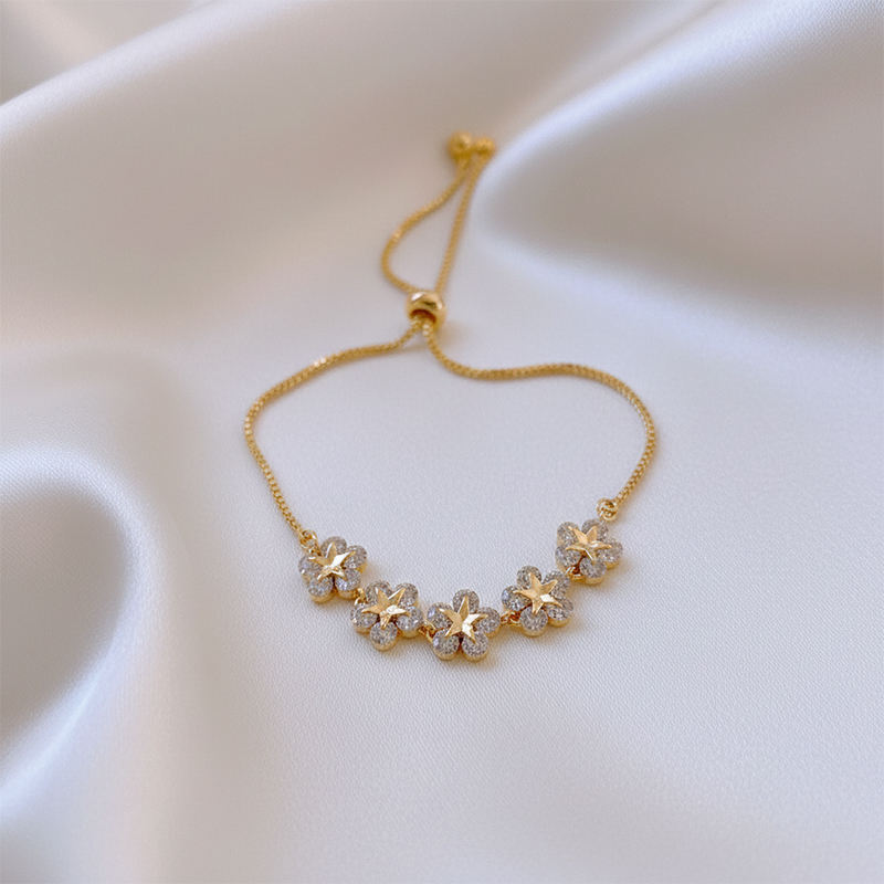 Bracciale INS con ciondolo a petalo in acciaio inossidabile placcato oro, alla moda, con cinque piccole stelle a punta, apribile, all'ingrosso, da donna, per matrimonio