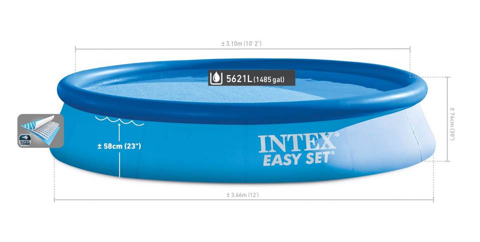 Piscina Fuori Terra Gonfiabile INTEX 28130 Easy Set per Famiglie, 3,66 m x 76 cm, Vendita al Dettaglio e all'Ingrosso