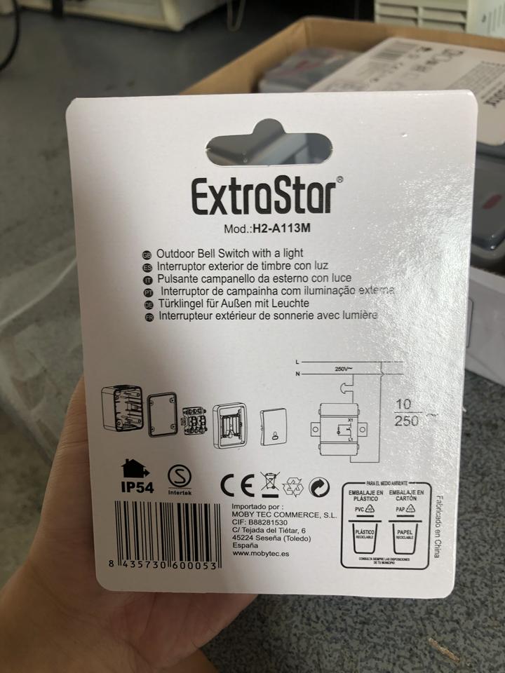 IP54 1-WAY Outdoor Doorbell Switch with Light 10AX 250V Modern Design Style Wired Home Application