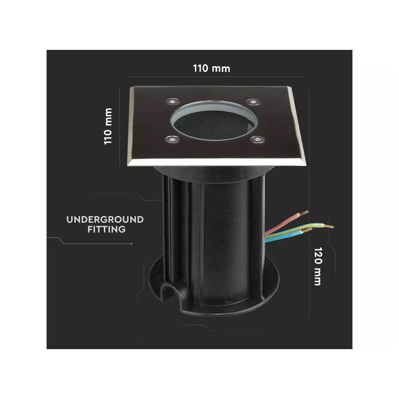Faretto Quadrato in Acciaio IP65 Guidabile per Lampada GU10, Luce LED da Esterno Calpestabile per Gradini, Incasso a Pavimento, Giardino e Paesaggio SKU-7516