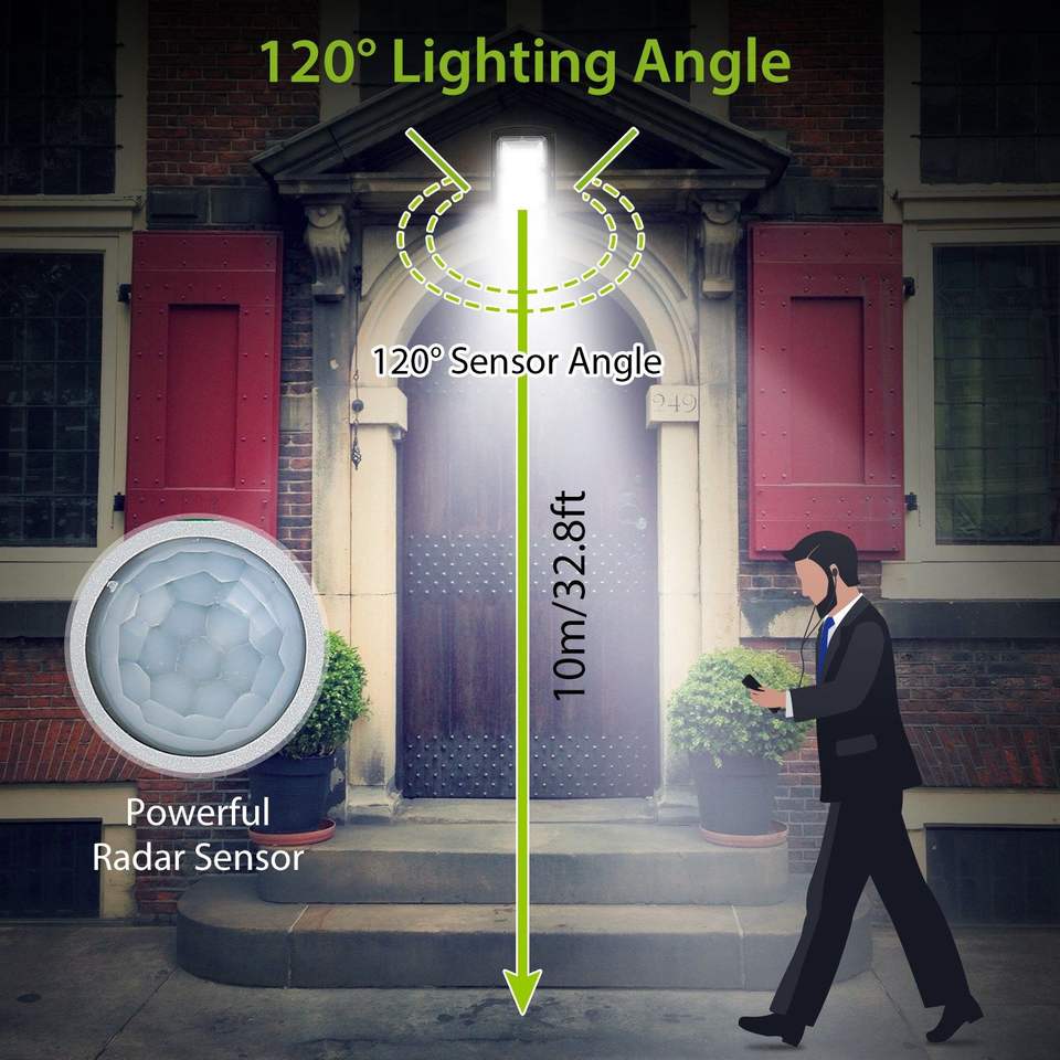 Lampada Solare da Esterno IP65 Impermeabile con Sensore Radar e Telecomando, 180 LED, Illuminazione Wireless