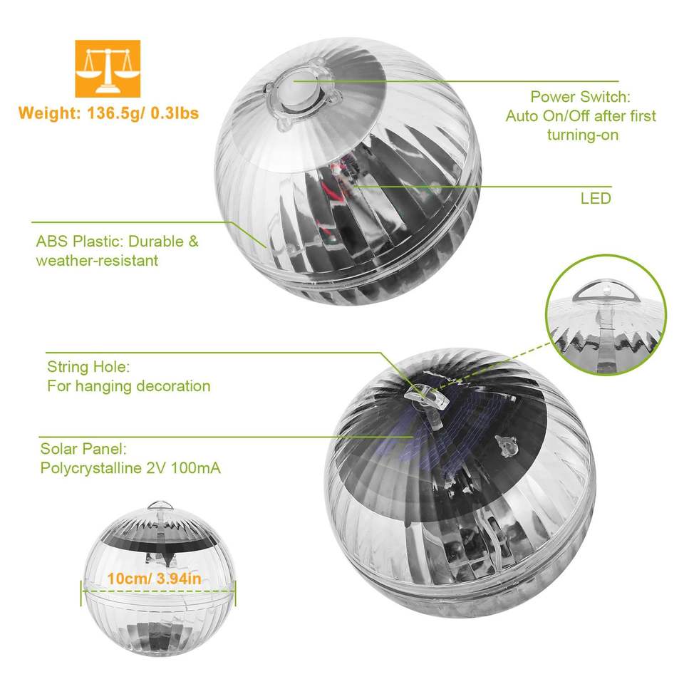 Luci Solari Galleggianti a LED Impermeabili IP65, Lampade Sospese a 7 Colori Cangianti per Giardino e Piscina