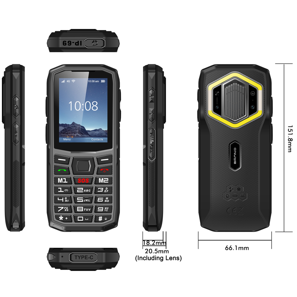 Telefono Cellulare Robusto IP68/IP69K con SOS/Luce da Campeggio/Luce d'Emergenza, Batteria Grande da 3000 mAh, Telefoni Cellulari 4G Base