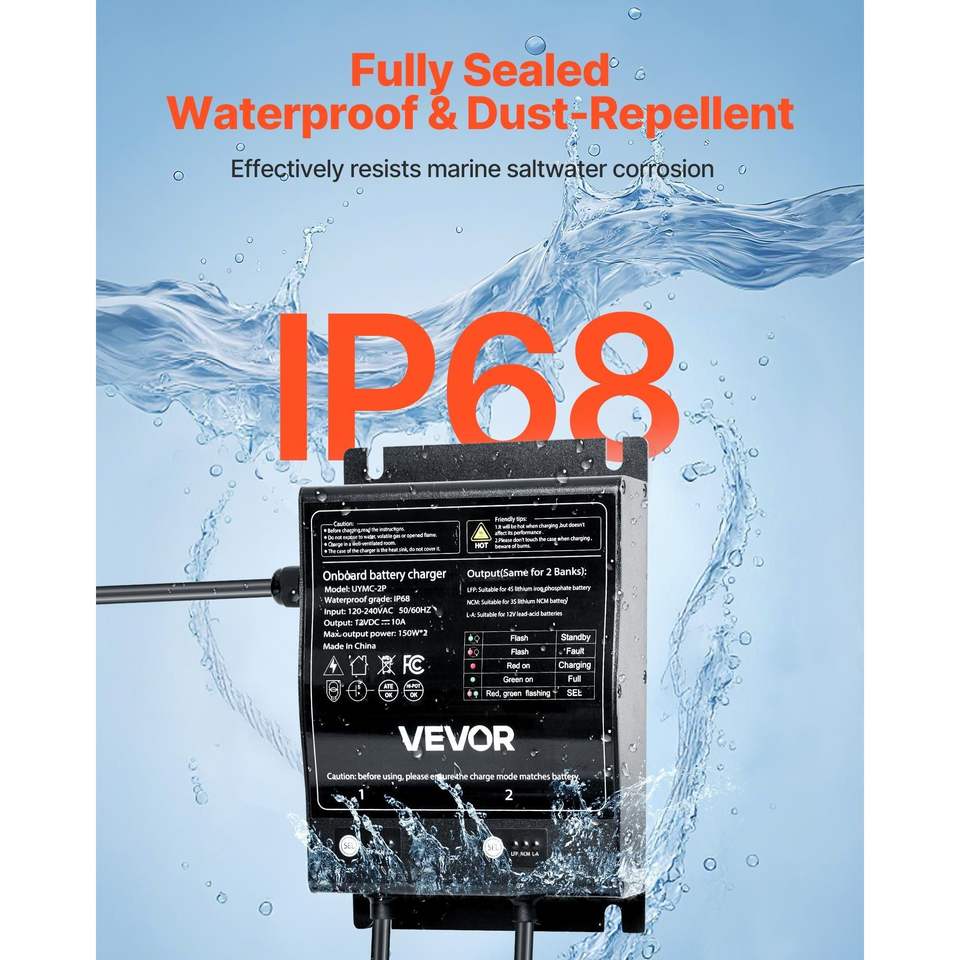 Caricabatterie Marino Intelligente a 2 Banchi 10A 12V IP68 Impermeabile per Batterie agli Ioni di Litio
