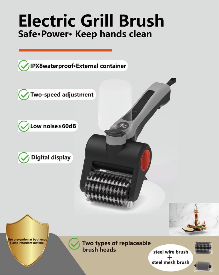 IPX8 2025 Hot-selling Product: Electric Barbecue Grill Brush With a Water tank and Complete Tools, It's More Worry-free