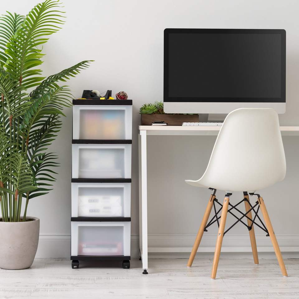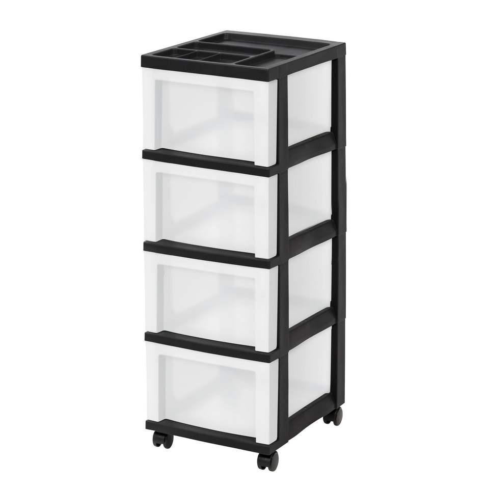 Carrello portaoggetti stretto in plastica IRIS nero a 4 cassetti con piano organizer per l'organizzazione
