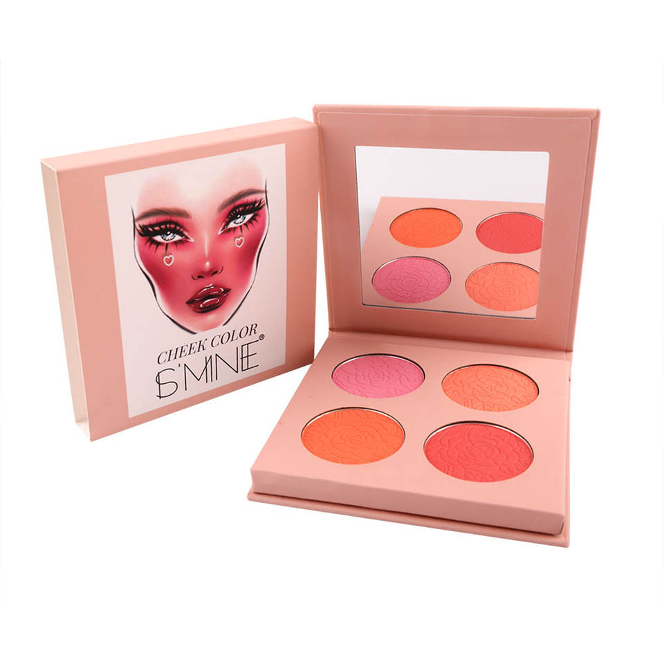 IS'MINE Blush Contour Palette Highlight Kit Makeup Contouring Peach Blush Setting Powder Face Color Finish 4 Color Blush Palette