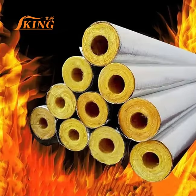 ISOKING isolamento termico tubo di lana di vetro coperto da foglio di alluminio isolante tubo caldaia in fibra di vetro