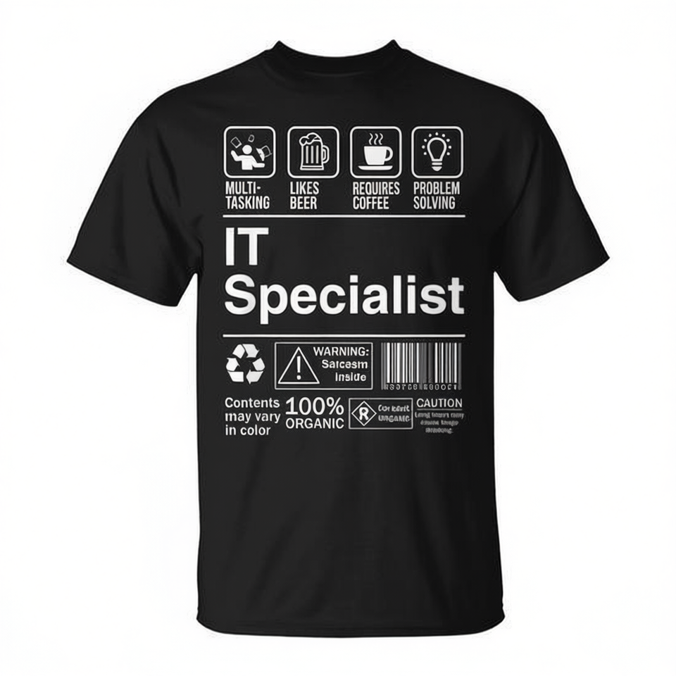 IT T-shirt Specialist Sarcastic Label nera per adulti unisex 100% cotone, regalo umoristico per i tecnologi