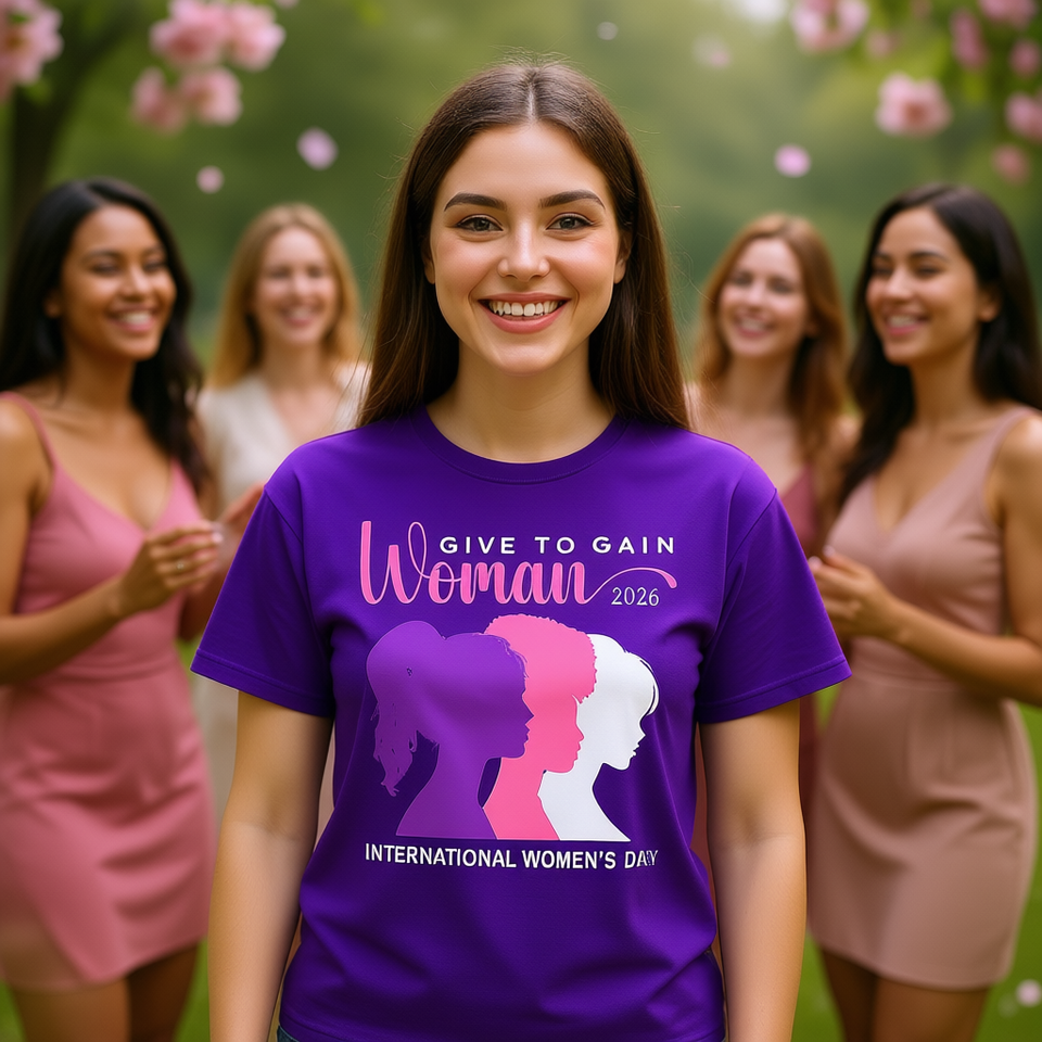 IWD2026 Women's T-Shirt International Women's Day 2026 Give To Gain Purple Casual Crew Neck Short Sleeve 100% Cotton Jersey