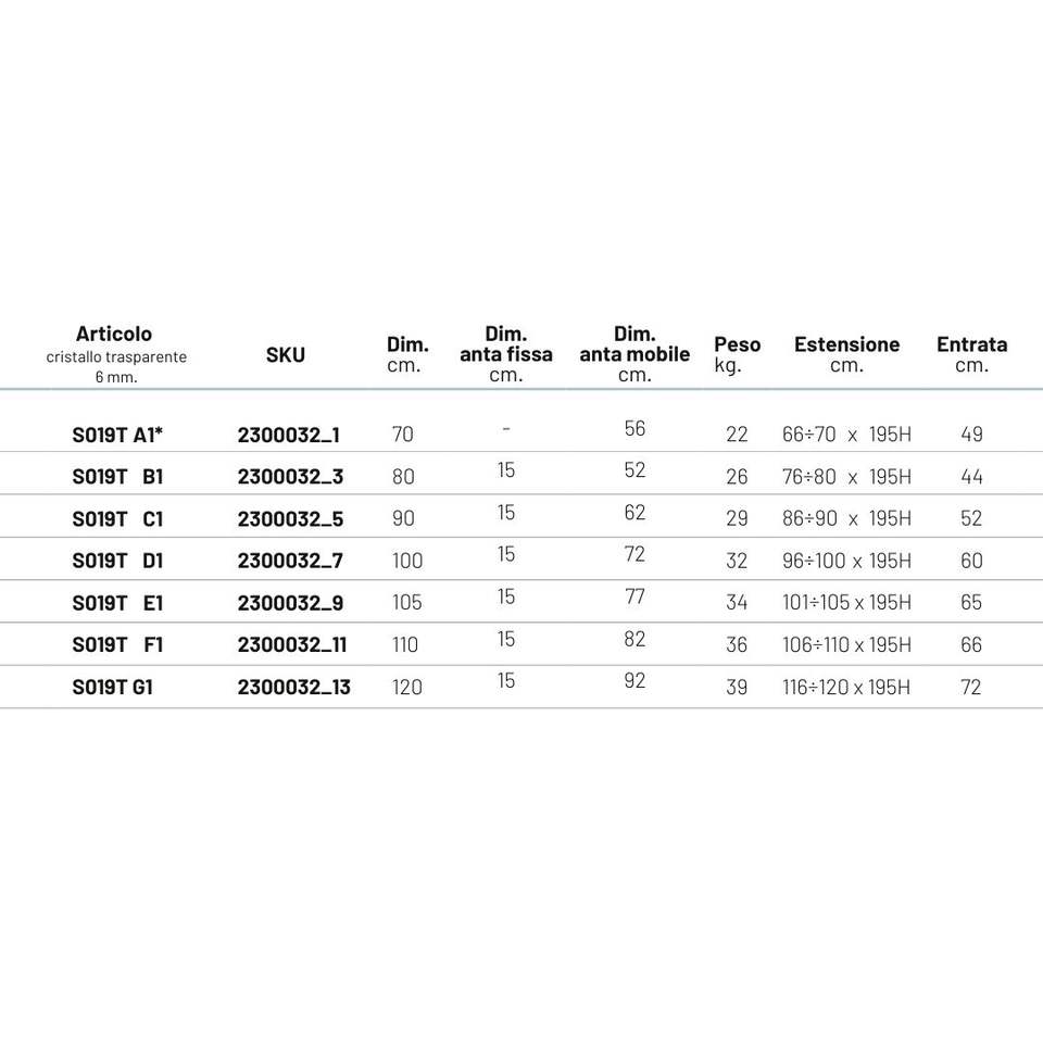 IX Clivia S019T porta doccia incernierata 6mm cristallo cromato 110cm regolabile dimensioni qualità cabina doccia