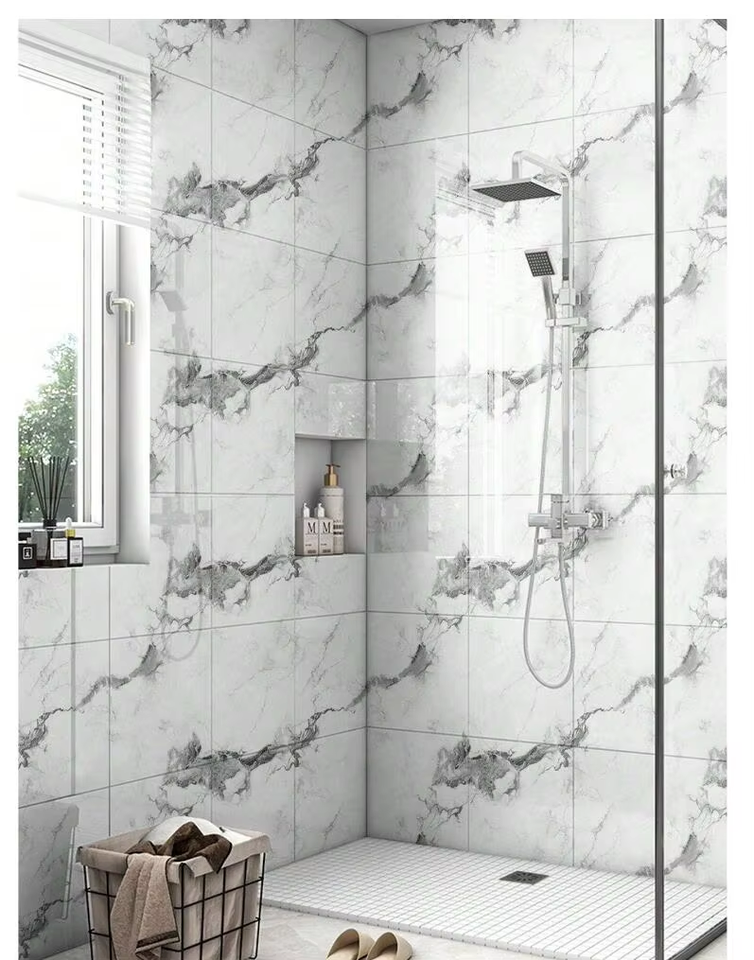 IXPE Marble Peel Stick Wall Panels 60*60cm Waterproof Glossy Wall Sticker for Kitchen Bathrooms Living & Bedrooms