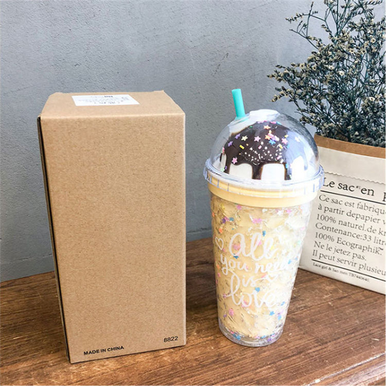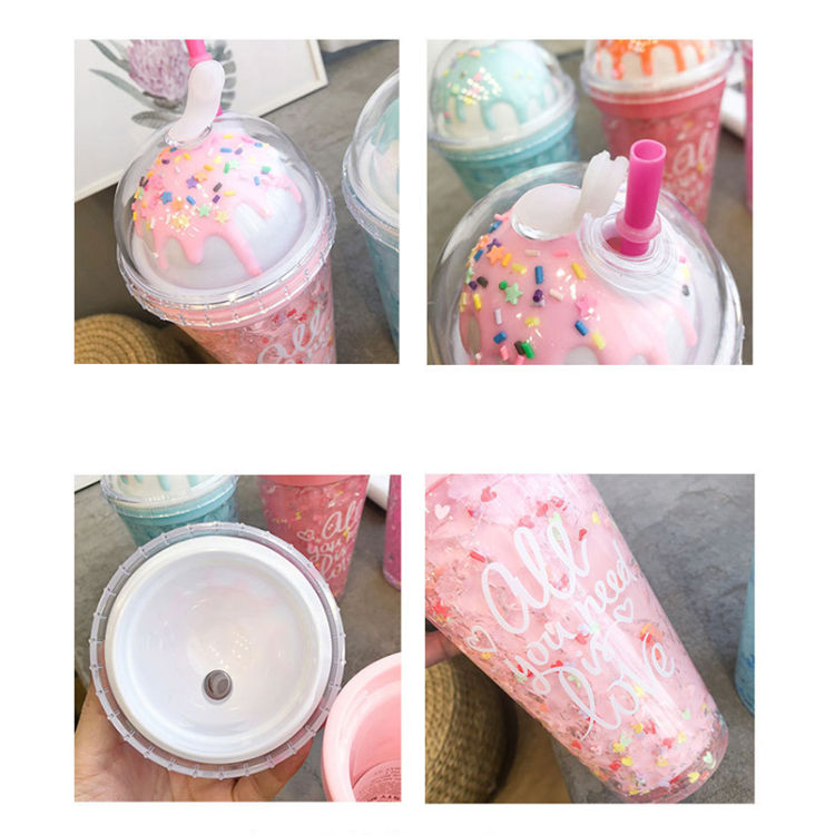 Ice Cream Double Wall To Go Cold Cup Tumbler with Straw BPA Free Mug