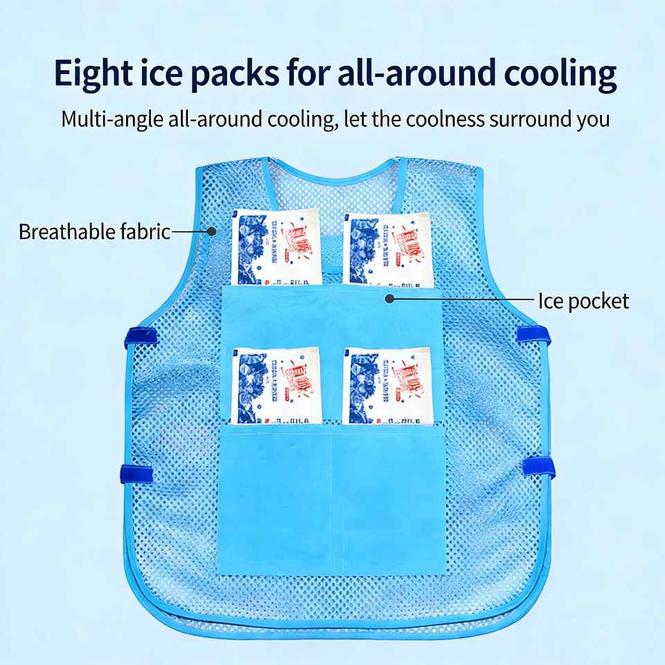 Gilet Refrigerante con Pacchi Ghiaccio per L'Estate, Anti-Colpo di Calore, per Lavoro all'Aperto e Personale di Prevenzione Epidemica
