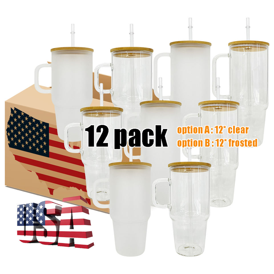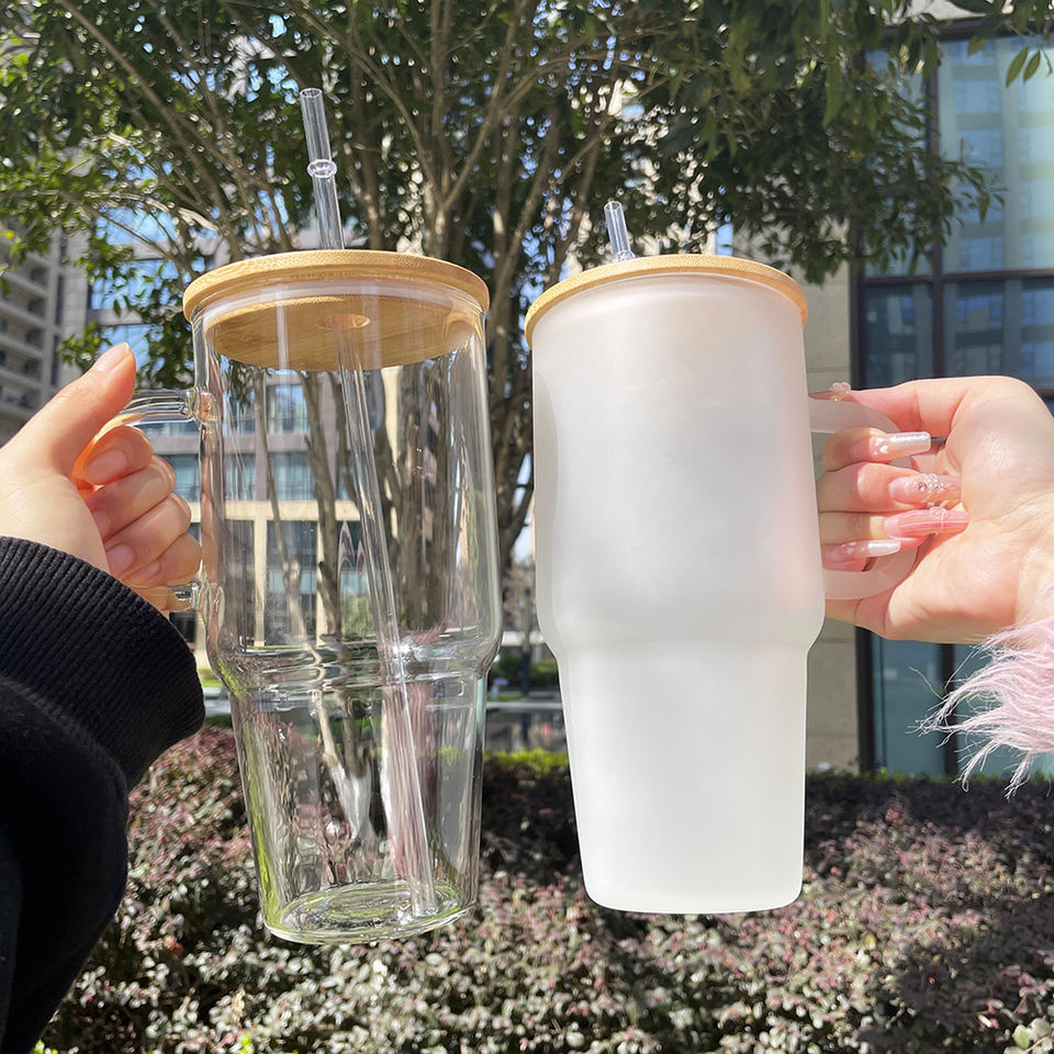 Iced Coffee 32oz 40oz Glass Tumbler Mugs for Vinyl Glass Coffee Mugs with Handle for Sublimation Heat Transfer Printing