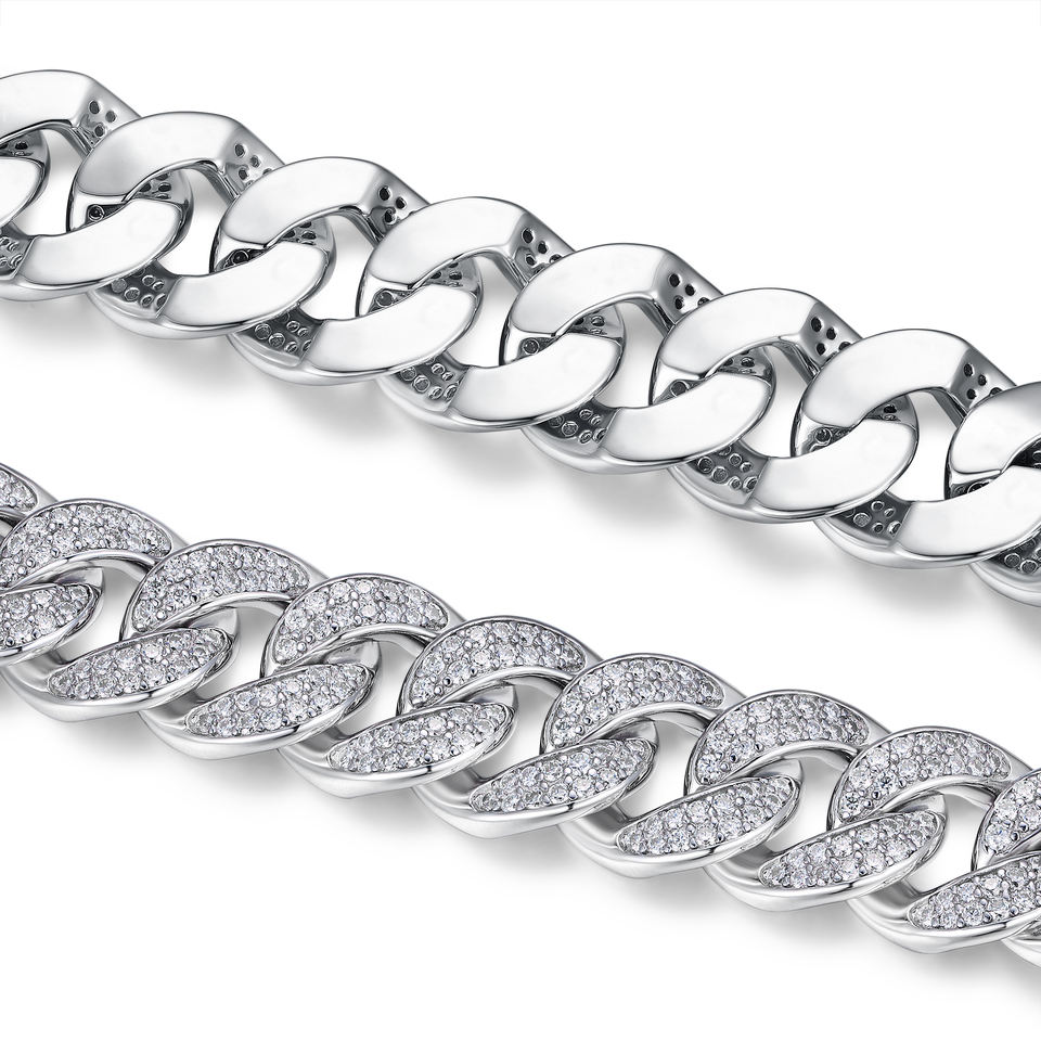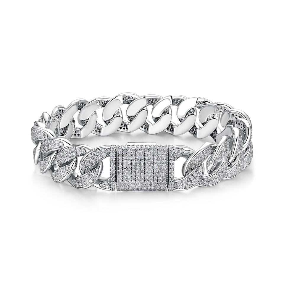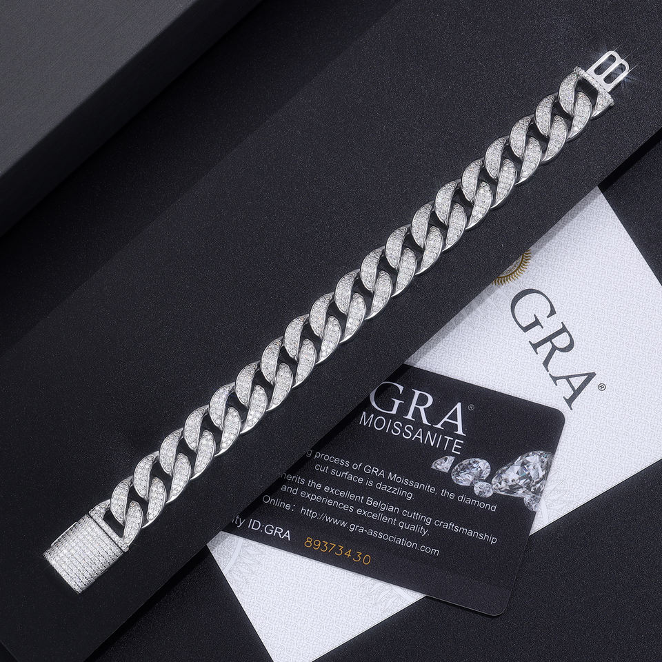 Bracciale Cuban Link con Moissanite Ghiacciata in Argento Sterling 925, Gioiello Hip Hop Placcato Oro Bianco 18K