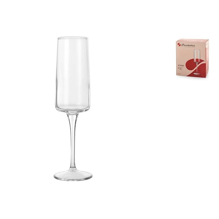 Iconici bicchieri da champagne in vetro trasparente da 19cl, confezione da 6