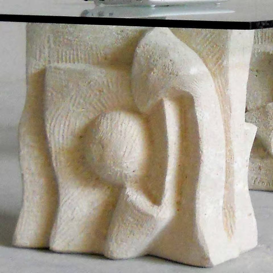 Tavolino da Caffè in Travertino Beige Chiaro Design Speciale Idao con Piano in Vetro, Tavolo in Pietra Naturale per Hotel