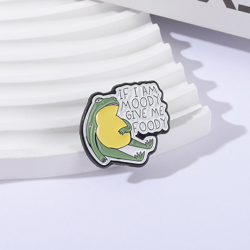 Se sono lunatico dammi spille con smalto Foody simpatiche spille con rana da meditazione vestiti con risvolto regalo di gioielli divertenti
