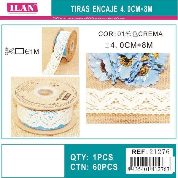 Strisce di pizzo 4,0 cm x 8 m colore crema per artigianato e cucito