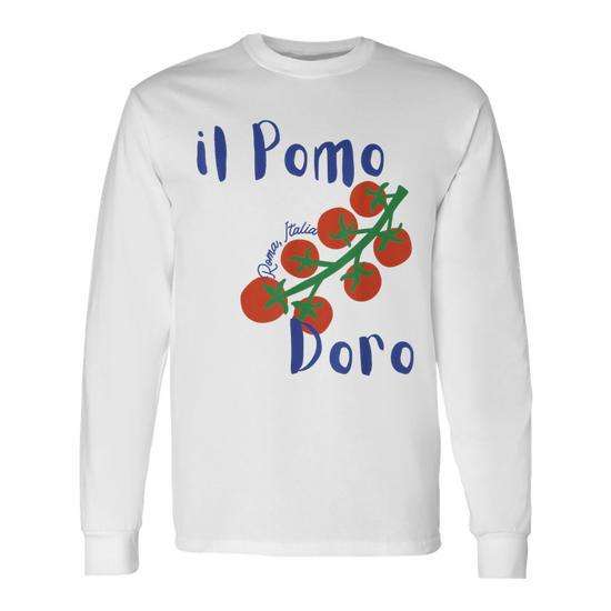 T-Shirt Italiana a Maniche Lunghe 'Il Pomodoro Roma Italia' con Motivo Pomodori Estivi, Prodotto Promozionale