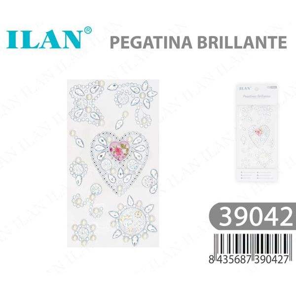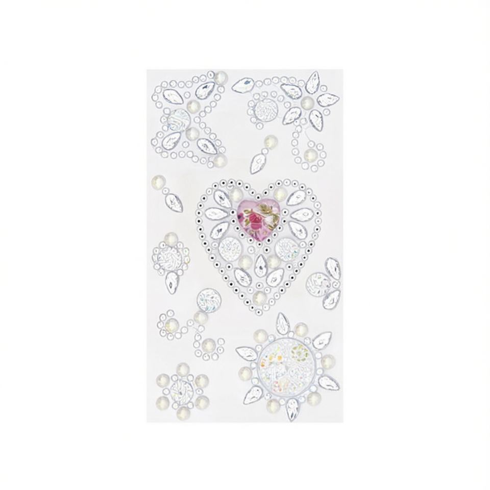 Adesivi con strass scintillanti a forma di cuore e farfalla bianchi 39042