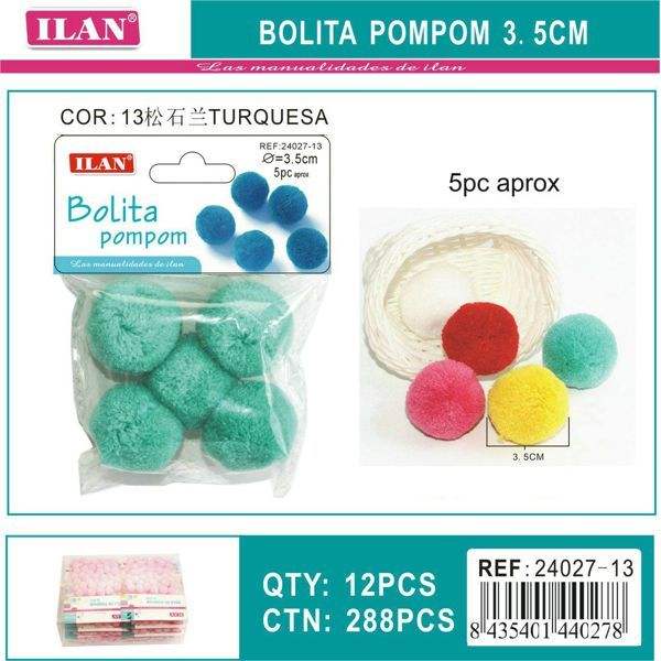 Pompon in Lana 3,5 Cm Turchese per Decorazioni Artigianali