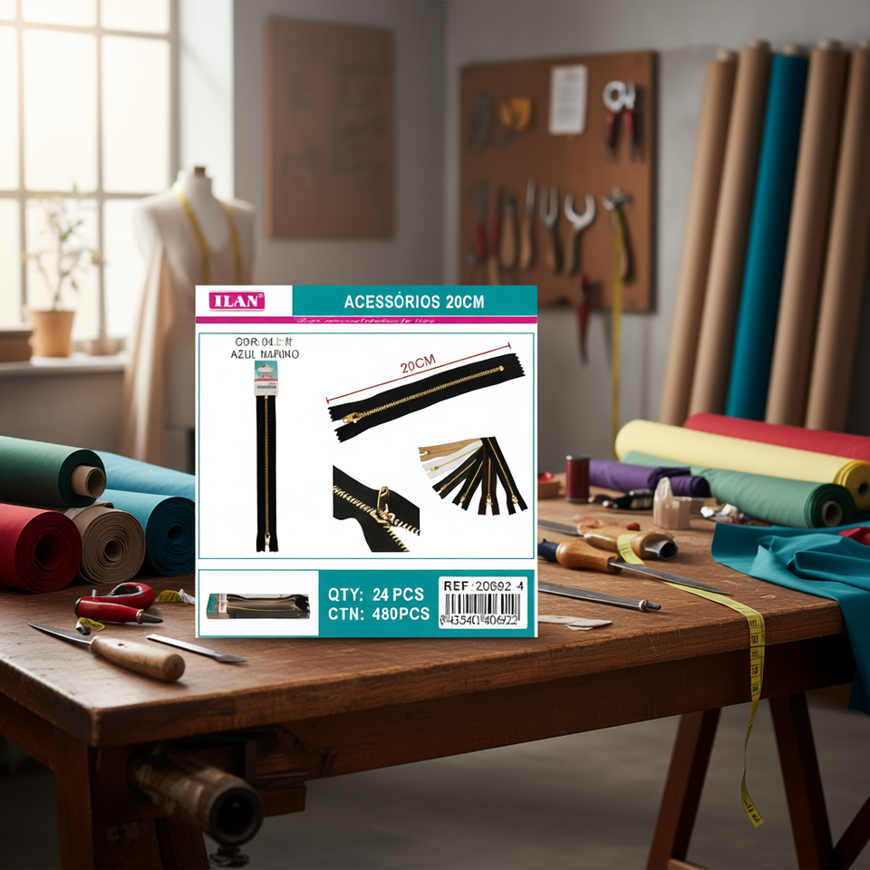 Cerniera 20 cm blu navy con denti in metallo per accessori di abbigliamento
