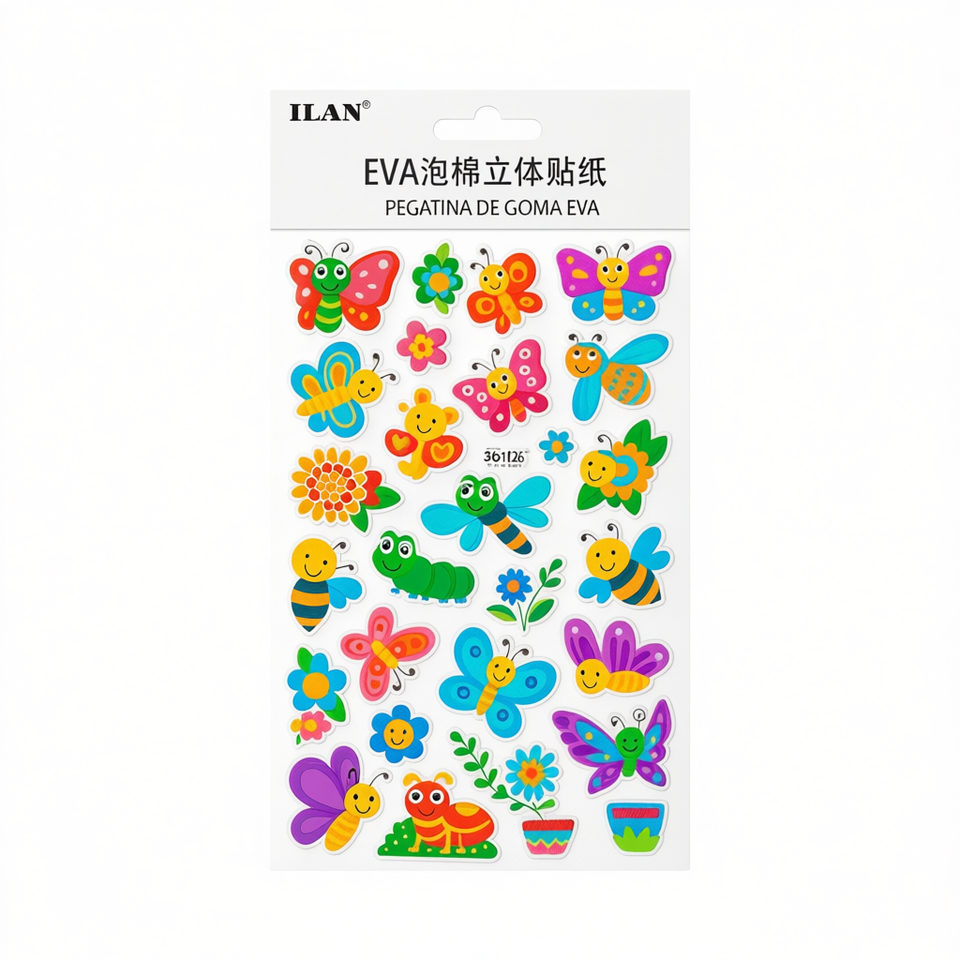 Adesivi 3D in schiuma EVA di Ilaan, insetti e fiori colorati per lavori manuali per bambini