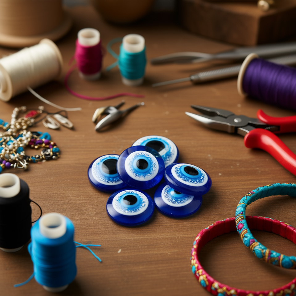 Ilan Abalorio Perline blu con occhio diabolico da 25 mm per la creazione di gioielli, 5 pezzi