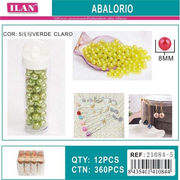 Perline Ilan Abalorio 8mm verde chiaro per la creazione di gioielli, 12 pezzi per tubo