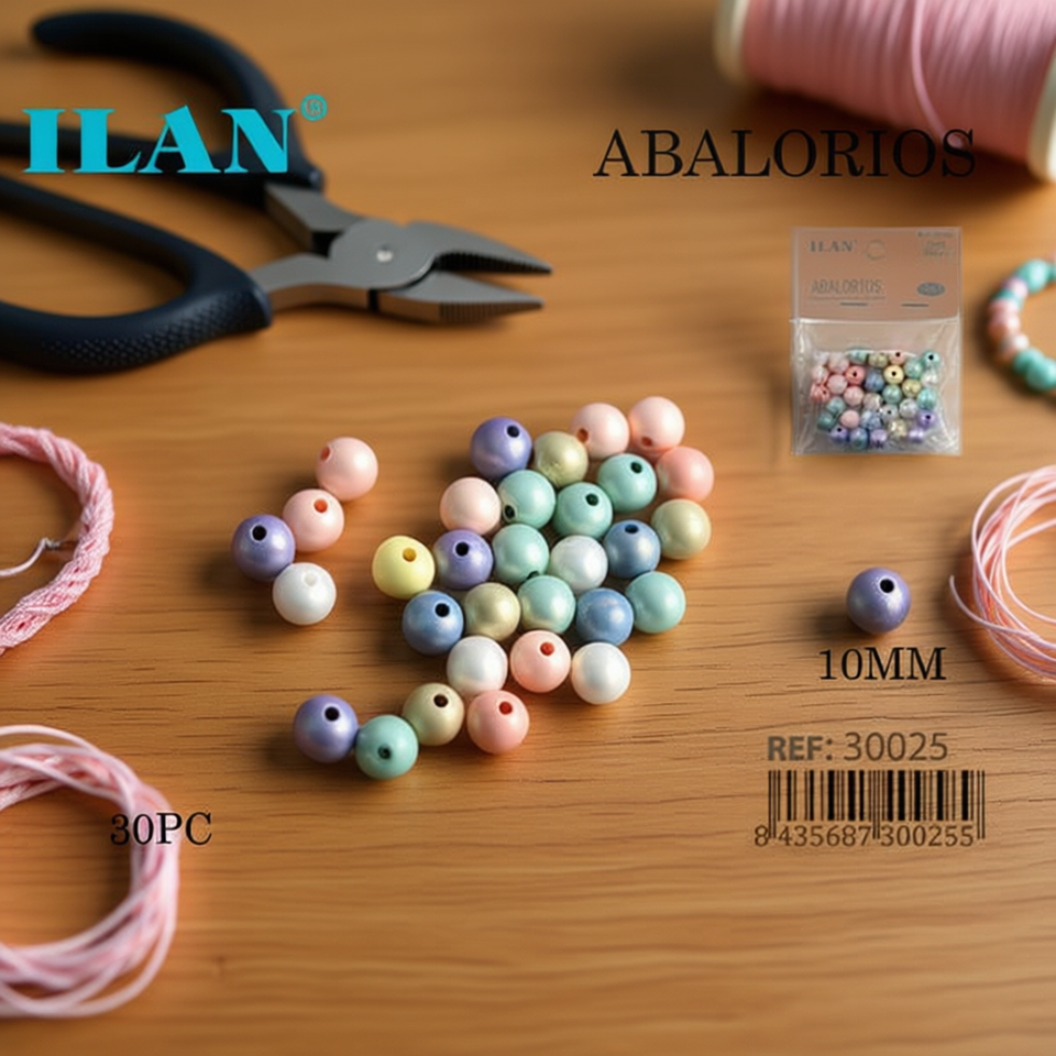 Ilan Abalorios Perline colorate pastello da 10 mm 30 pezzi per la creazione di gioielli