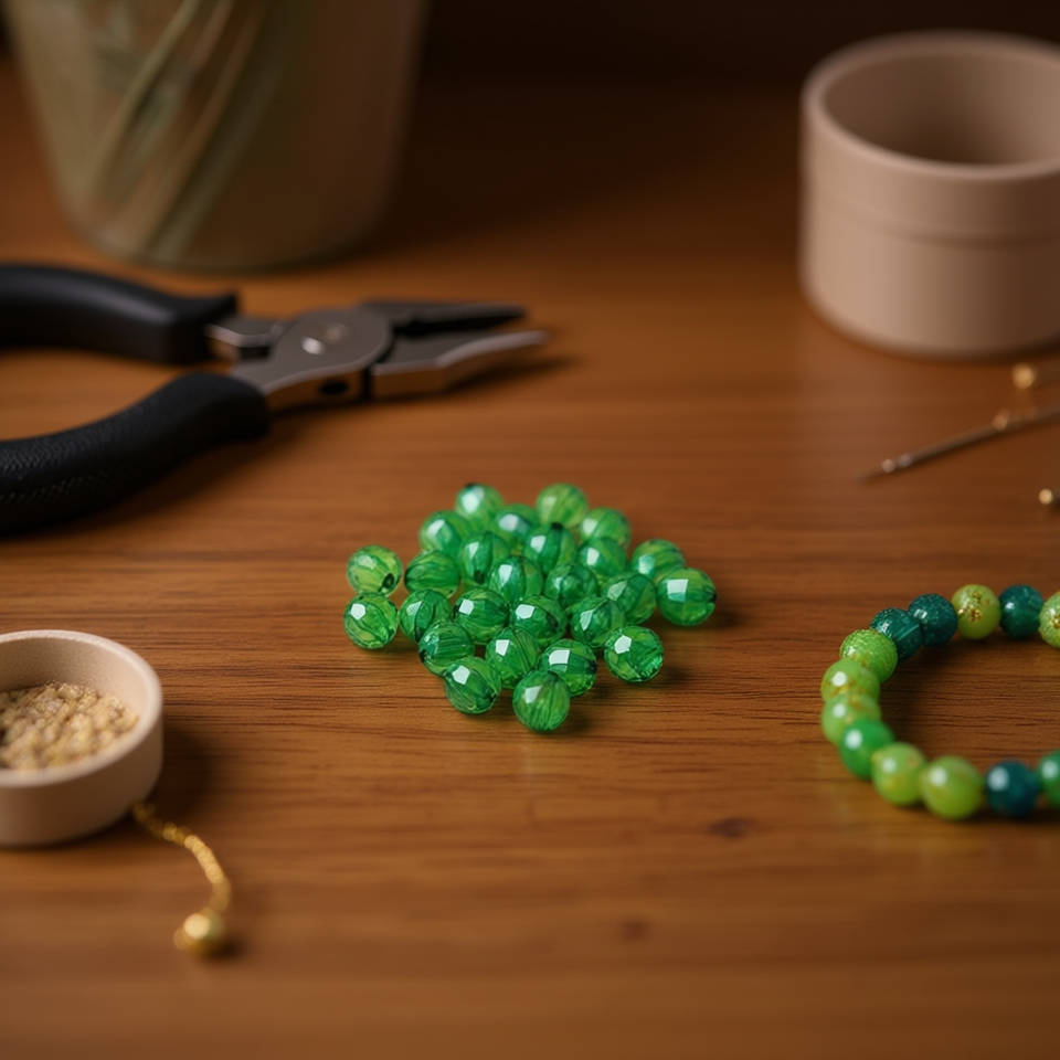 Ilan Abalorios Perline Rotonde Sfaccettate Verdi da 10mm 15g per Creazione di Gioielli