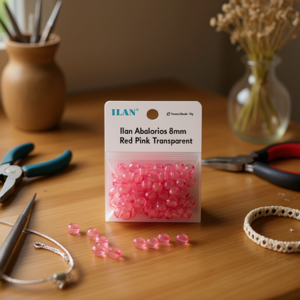 Ilan Abalorios Perline rotonde trasparenti rosso rosa da 8 mm 15 g per la creazione di gioielli