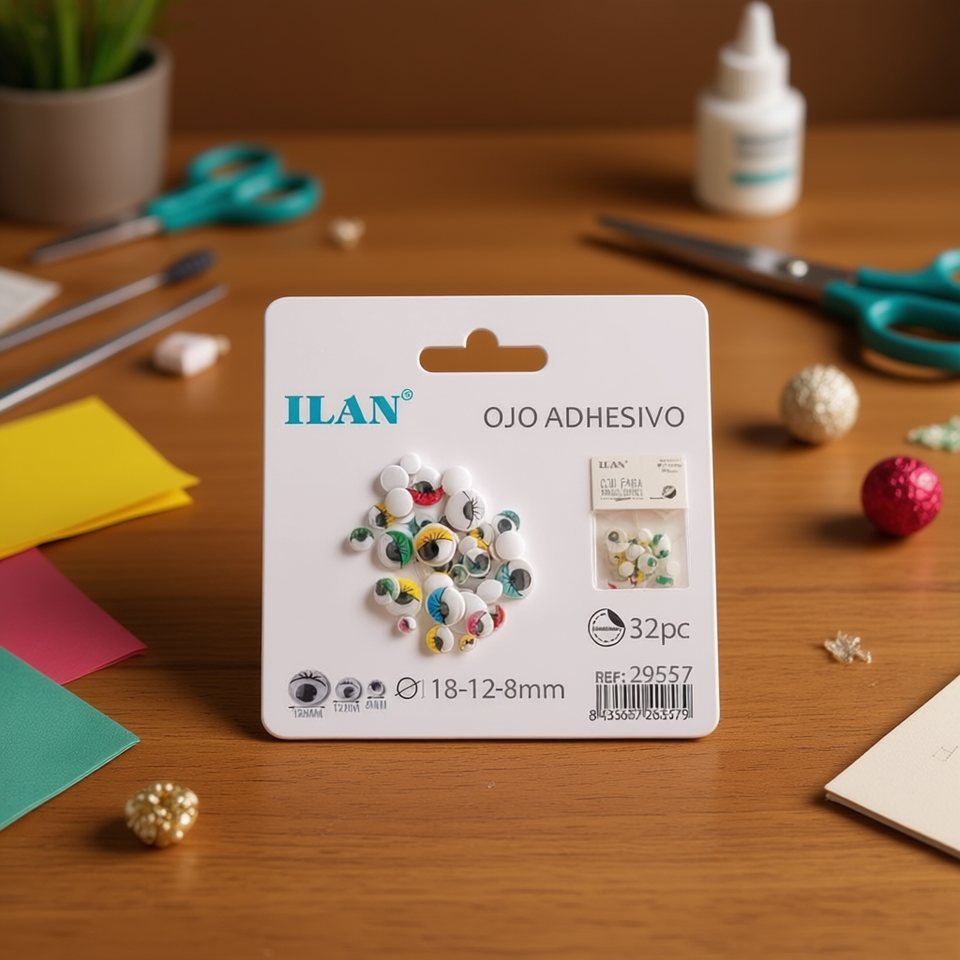 Ciglia Adesive Colorate Ilan 18-12-8mm per Artigianato, Confezione da 32 Pezzi