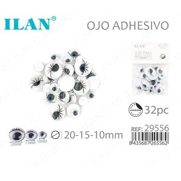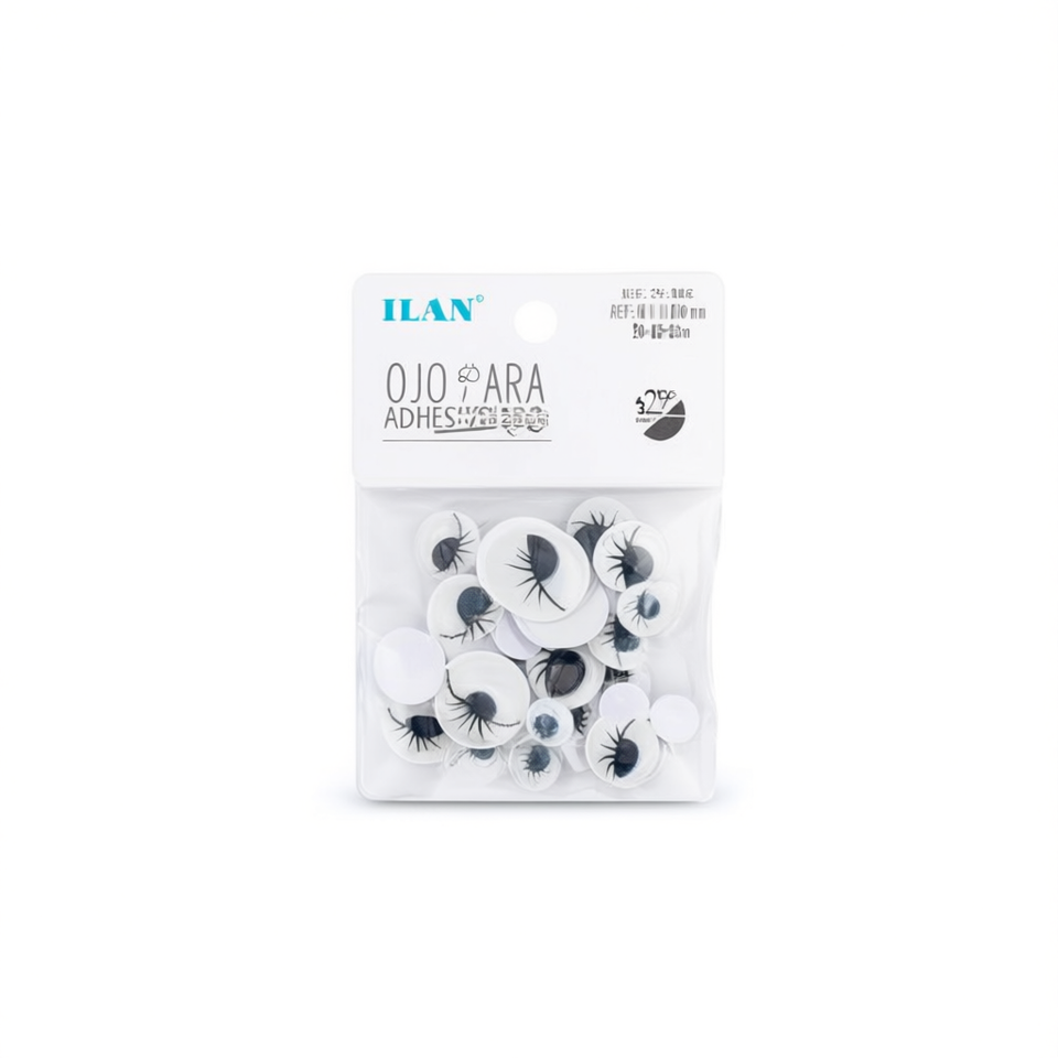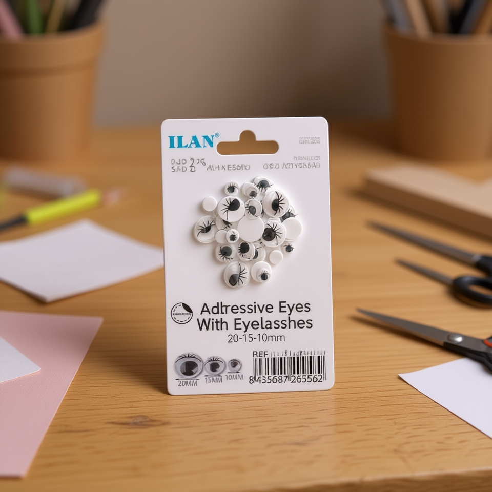 Occhi Adesivi Ilan con Ciglia 20-15-10mm per Artigianato e Progetti Fai-da-Te