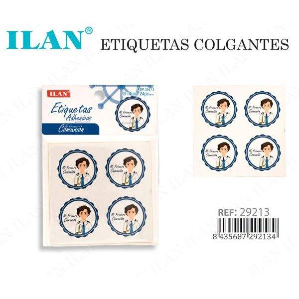 Etichette Adesive da Appendere Ilan, 24 Pezzi, Tema Battesimo, Design per Bambino