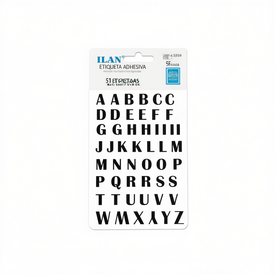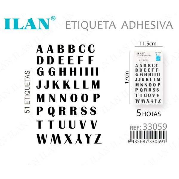 Etichette Adesive Ilan 11,5x17cm, 51 Etichette, 5 Fogli, Lettere Alfabetiche per Uso su Indumenti