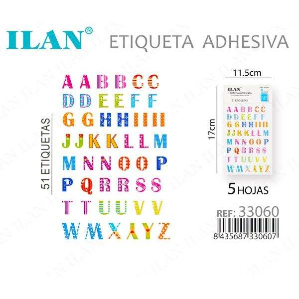 Etichette Adesive Ilan 11.5x17cm Alfabeto Colorato 5 Fogli Per Etichette Abbigliamento