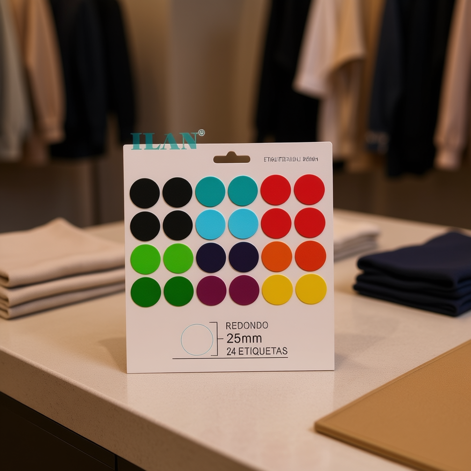 Etichette Adesive Rotonde Ilan 25mm, 24 Etichette per Foglio, 5 Fogli, Adesivi Colorati per Etichettatura Indumenti