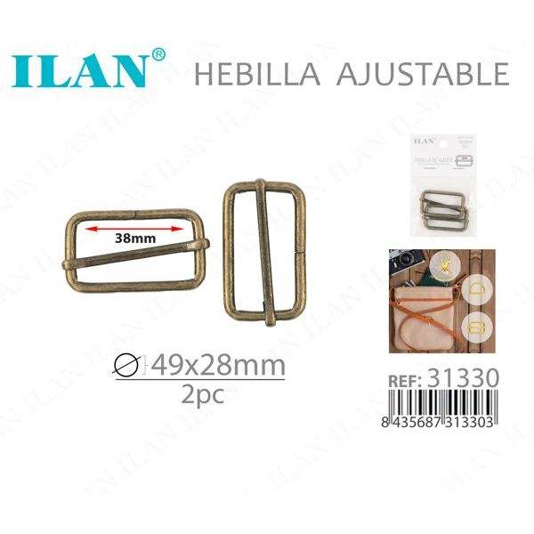 Fibbia Regolabile Ilan 49x28mm in Metallo per Cinture, Set da 2 Pezzi