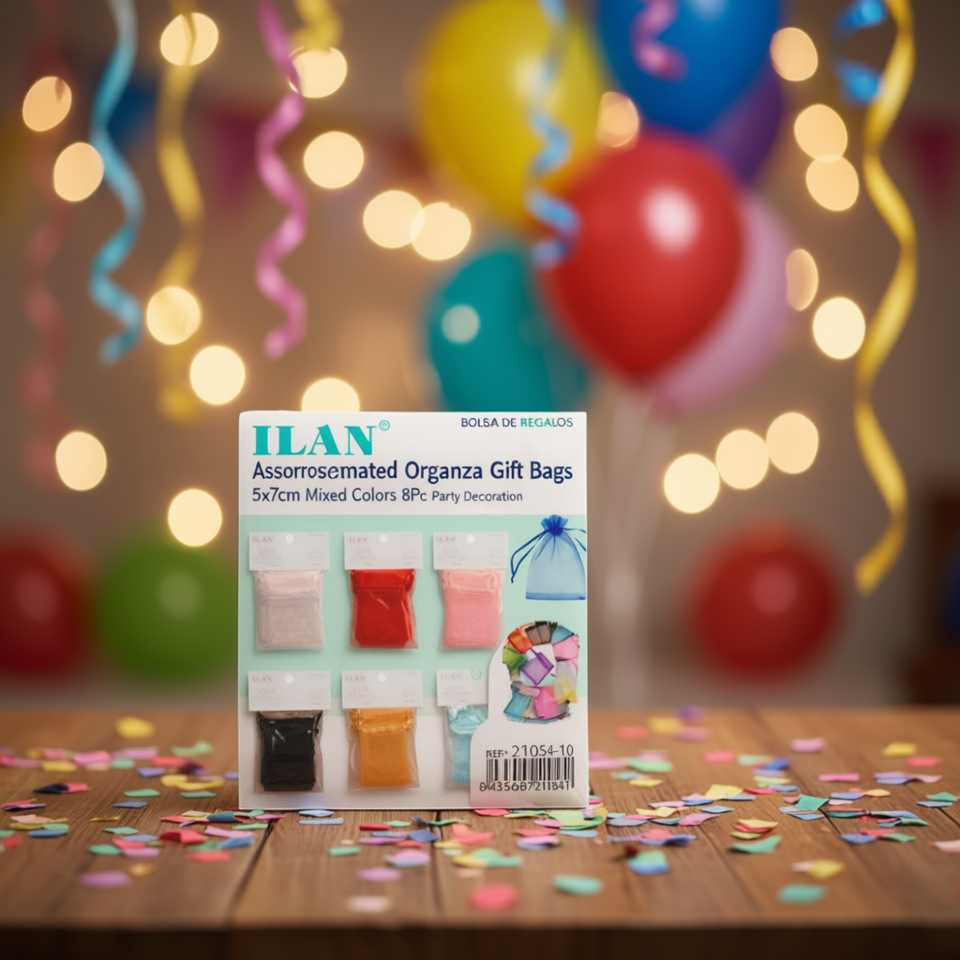 Ilan Assorted Organza Gift Bags 5x7cm Mixed Colors 8Pc Party Decoration