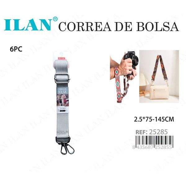 Tracolla per borsa Ilan 2,5 cm grigia regolabile per fotocamera e borsa