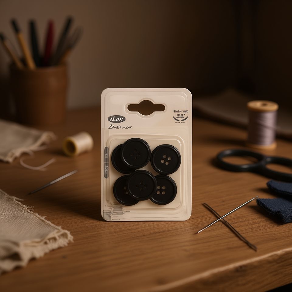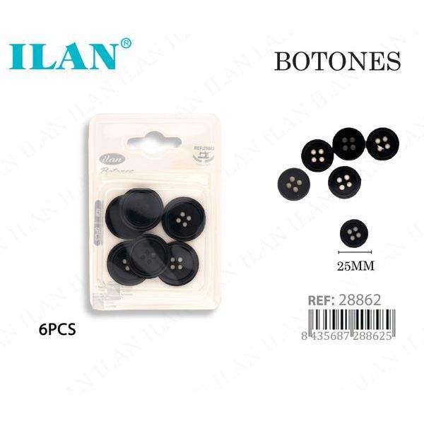 Bottoni Neri Ilan a 4 Fori 25mm Confezione da 6 Pezzi per Riparazione Abbigliamento
