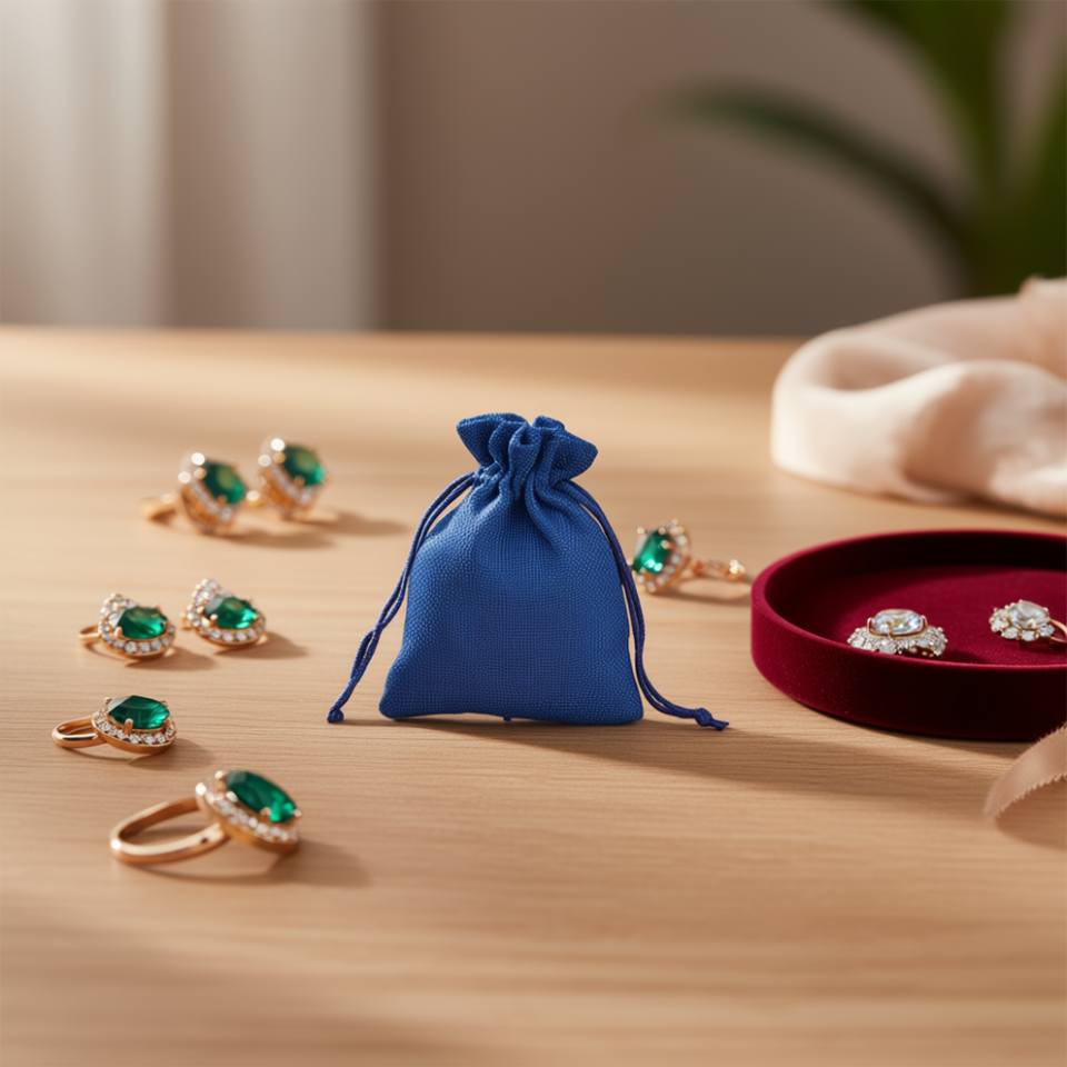 Sacchetto regalo blu Ilan 10x15 cm con coulisse per confezionamento gioielli