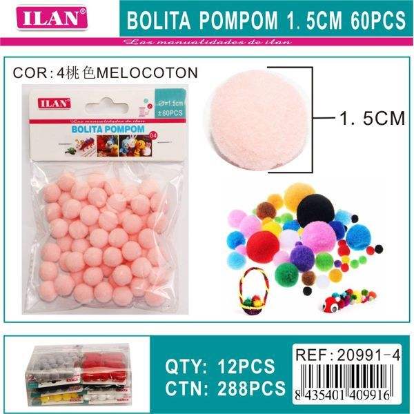 Ilan Bolita Pompom 1.5Cm 60Pcs Melocoton Materiali per Artigianato