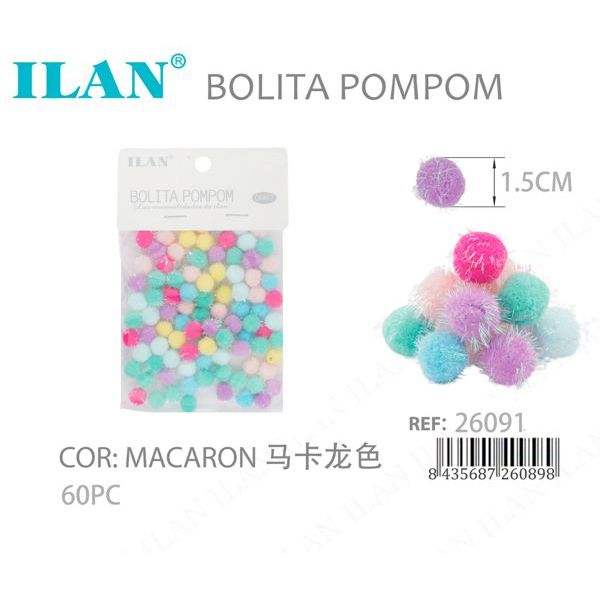 Ilan Bolita Pompom 1,5 cm Colore Macaron 60 Pezzi Decorazioni Artigianali
