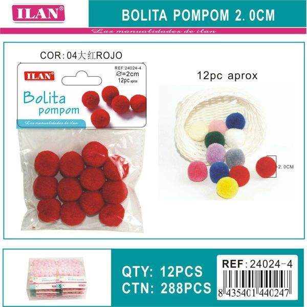 Pompon Ilan Bolita 2.0 Cm in Lana Rossa per Decorazioni Artigianali