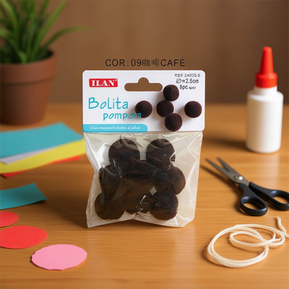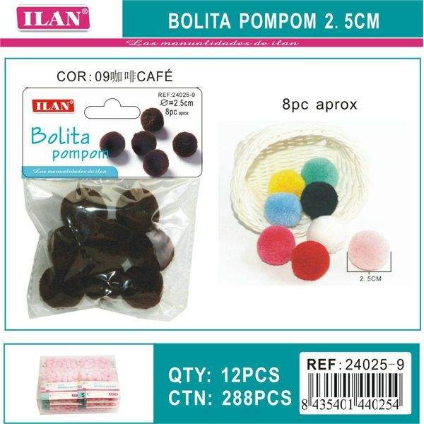 Pompon Ilan Bolita 2,5 cm Colore Caffè per Decorazioni Artigianali