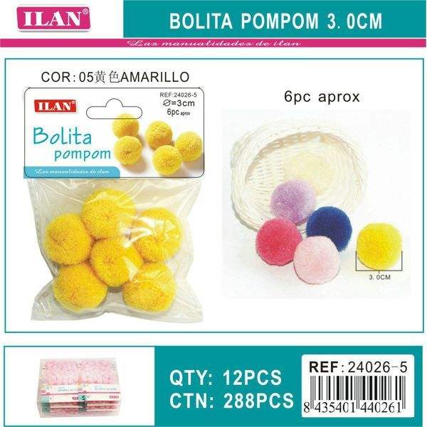 Pompon Ilan Bolita 3.0 Cm Giallo per Forniture Artigianali